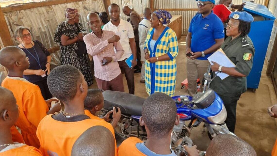 Le 4 décembre 2024, à Bangui, deux initiatives marquantes, soutenues par la MINUSCA, ont été lancées en faveur de la réinsertion sociale des détenus en République centrafricaine. La première concerne la formation professionnelle en mécanique moto, destinée à 20 détenus mineurs de la Maison Centrale de Ngaragba, et la seconde concerne les femmes détenues des Maisons d'arrêt de la République centrafricaine qui ont exposé et vendu leurs produits lors d'une foire organisée à Bangui.