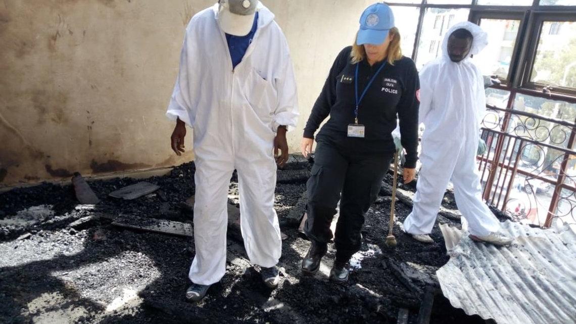 Goma : la police MONUSCO assiste la PNC dans la gestion d’une scène de crime par incendie. Photo MONUSCO/UNPOL