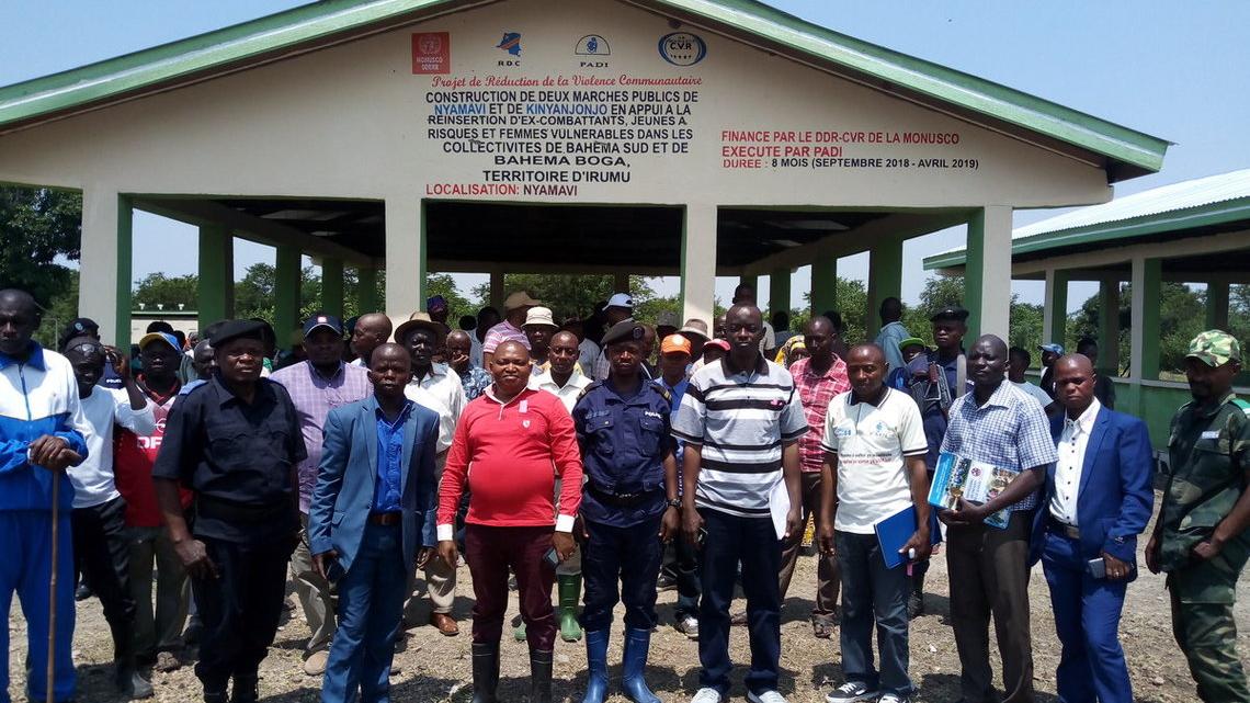 Le 15 août 2019, la MONUSCO a remis également aux autorités coutumières du Secteur de Bahema Sud dans la Province de l’Ituri deux hangars et des latrines construits au marché de Nyamavi, une localité située à environ 65 kilomètres au sud de Bunia au bord du Lac Albert. Cette intervention de 50,000 dollars américains s’inscrit dans le cadre des projets de Reduction de la Violence Communautaire et a été mise en œuvre par l’ONG locale Programme d’Action pour le Développement Intégré (PADI).