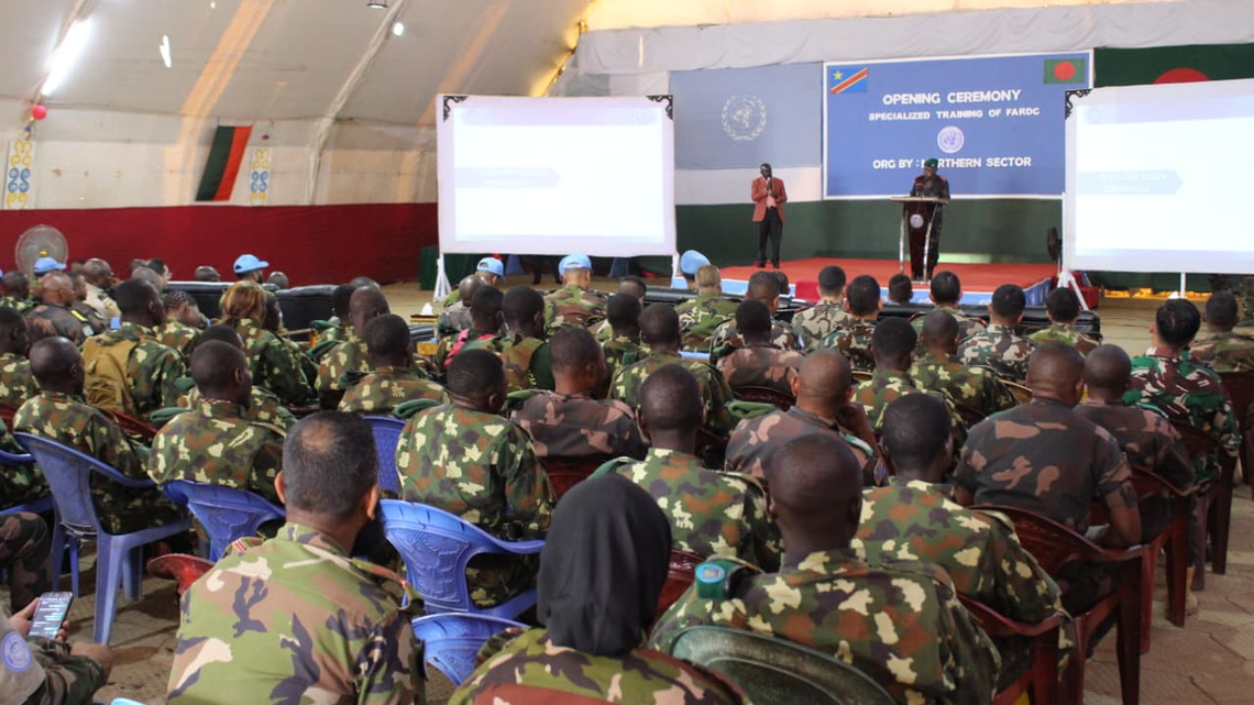 « Ces hommes sont formés pour s’adapter aux réalités du terrain, vu que nous sommes engagés dans une guerre asymétrique. Il faut les préparer à affronter toutes les éventualités. Le résultat, c’est qu’en Ituri, nos forces, avec vous, évoluent très bien et nous ne cédons pas le terrain à l’ennemi. Je voudrais que cela continue. Nous menons des opérations ensemble [avec la MONUSCO], et vous avez vu sur le terrain que les FARDC se comportent avec bravoure, parce qu’ils suivent votre exemple. Cette préparation de nos unités au combat va demeurer : vous laisserez un bon souvenir à la RDC, au peuple congolais et aux FARDC », a-t-il affirmé en mai dernier, à l’occasion de la clôture d’une formation de 400 FARDC par la MONUSCO au camp militaire de Rwampara, dans la banlieue de Bunia.