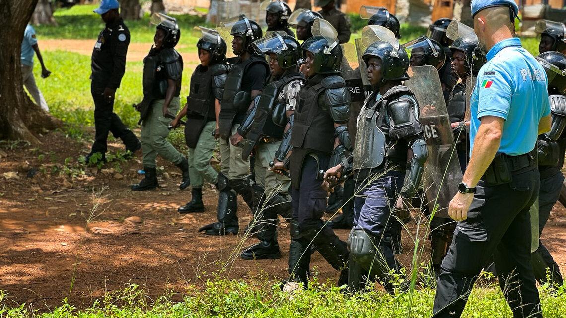 Du 16 au 20 septembre 2024, la police de la MINUSCA a organisé une session de formation à l’intention de 30 gendarmes, dont sept femmes, sur le maintien et le rétablissement de l’ordre public. L'objectif de cette session était de former les gendarmes centrafricains à intervenir efficacement en cas de troubles à l'ordre public. Les formations ont été dispensées par des formateurs nationaux, issus de la gendarmerie centrafricaine, avec l’appui de leurs homologues de la MINUSCA.