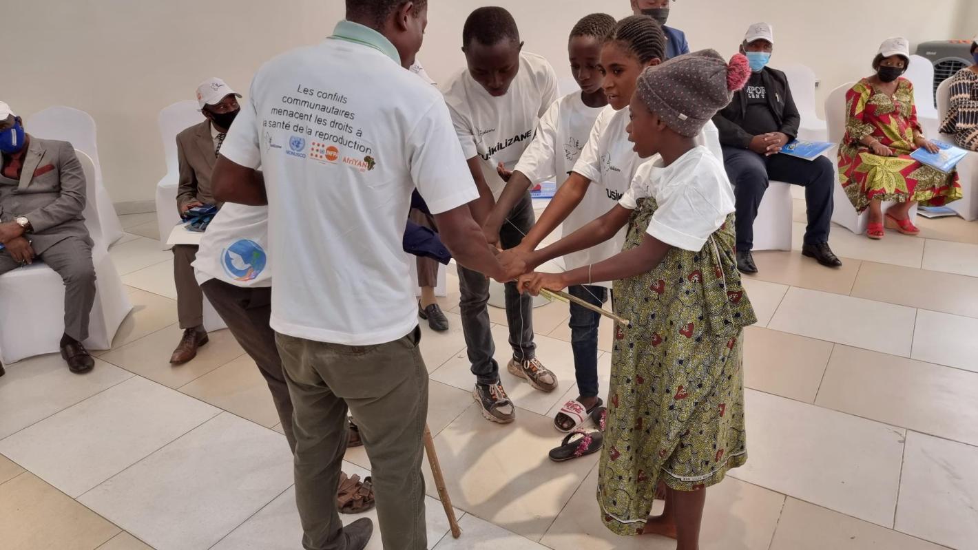 A Kalemie, une représentation théâtrale autour du thème de la paix. Photo MONUSCO/Marcelline Comlan