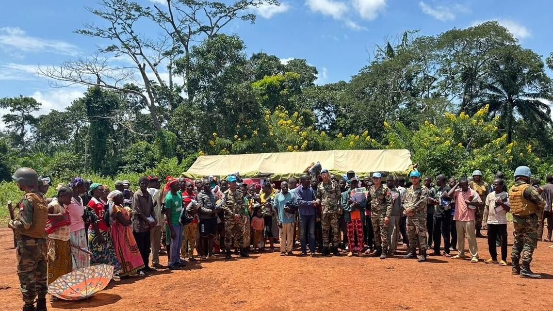 La localité de Dembia, préfecture du Haut-Mbomou, a accueilli, le 15 octobre 2025, une patrouille du contingent marocain de la MINUSCA en mission d’évaluation sécuritaire. Sur place, le leadership du contingent, avec à sa tête le colonel Radouan Khamid, commandant du bataillon, a interagi avec les autorités et les leaders locaux à qui il a réaffirmé l’engagement de la Force à protéger les civils, en leur garantissant un environnement sûr.