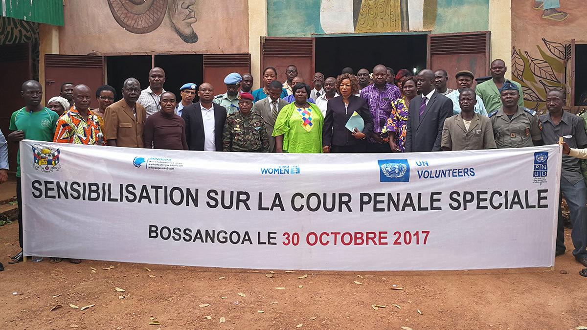 Le 30 octobre 2017, les habitants de Bossangoa ont été nombreux à prendre part à la toute première session de sensibilisation organisée dans l’Ouham sur la Cour Pénale Spéciale (CPS) par le Projet conjoint Gouvernent centrafricain et Nations Unies à travers ONUFEMMES, le PNUD, et le Programme des Volontaires des Nations Unies.