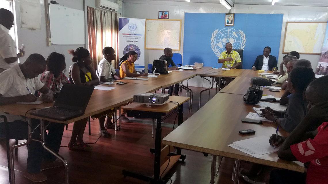 Rencontre avec les journalistes organisée par le BCNUDH et la section de la Communication Stratégique et de l’Information Publique (CSIP) pour outiller le pool des journalistes spécialisés sur les questions de droits de l’homme. Photo MONUSCO/Bilamekaso TCHAGBELE