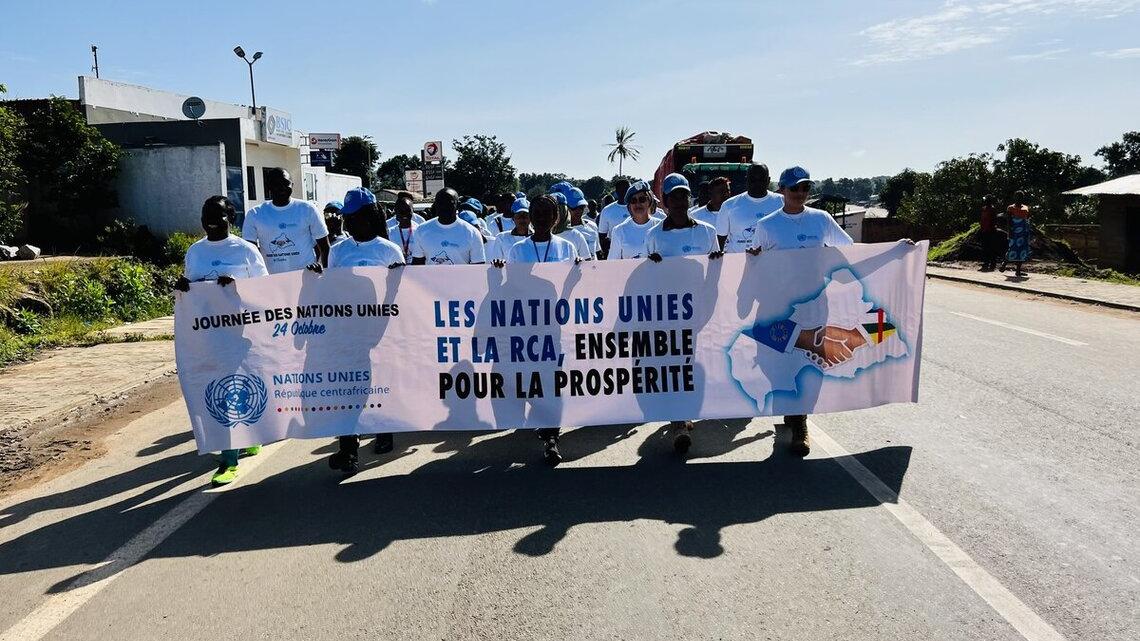 Le personnel de la MINUSCA et les agences onusiennes ont célébré la Journée des Nations Unies, avec à leurs côtés les autorités locales, les représentants des Forces de défense et de sécurité et les responsables de la Société civile de Bouar sous le thème : « Reconstruire ensemble pour la paix et la prospérité ».