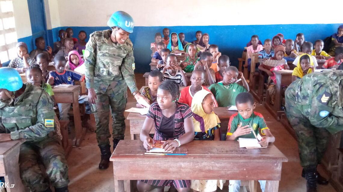 Chargée de la défense de l’égalité et du genre au sein du contingent rwandais de la MINUSCA à Bria, le Lieutenant Jovia Kampire s’investit, avec ses collègues d’armes, au retour de la paix en République centrafricaine, à l’autonomisation de la femme et la scolarisation des filles, entre autres. En plus de la protection des populations, elle se donne à cœur joie à des activités civilo-militaires et humanitaires, afin d’alléger la souffrance de certains populations à risque.