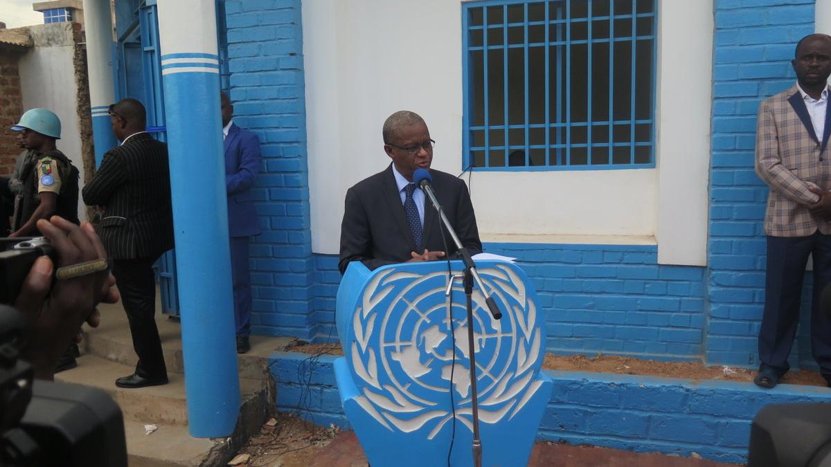 Lubumbashi : Maman Sidikou inaugure un Qips lors de sa toute première visite dans la capitale cuprifère. Photo MONUSCO/Jean Ngandu