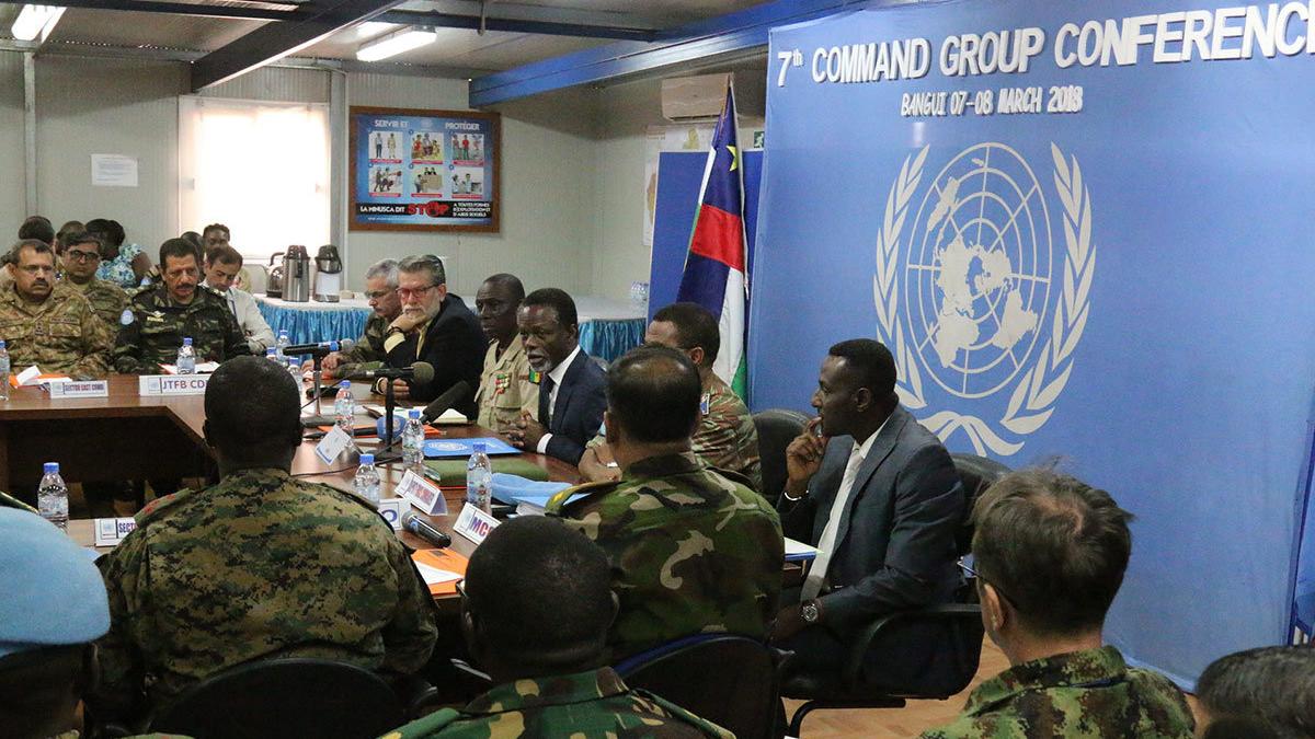 Dans le but de mieux répondre aux défis sécuritaires actuels de la République centrafricaine, les commandants de contingents de la MINUSCA se réunissent ces 7 et 8 mars à la base logistique de la Mission, à l’occasion de la 7e conférence annuelle de commandement de la Force. C’était en présence du Représentant spécial du Secrétaire général des Nations Unies en RCA, Parfait Onanga-Anyanga, du Commandant de la Force, le Général Balla Keita, et de son adjoint, le Général Daniel Sidiki Traore, ainsi que du Directeur des Services d’appui à la Mission, Milan Trojanovic, et du chef de cabinet adjoint de la Mission, Souleymane Thioune.