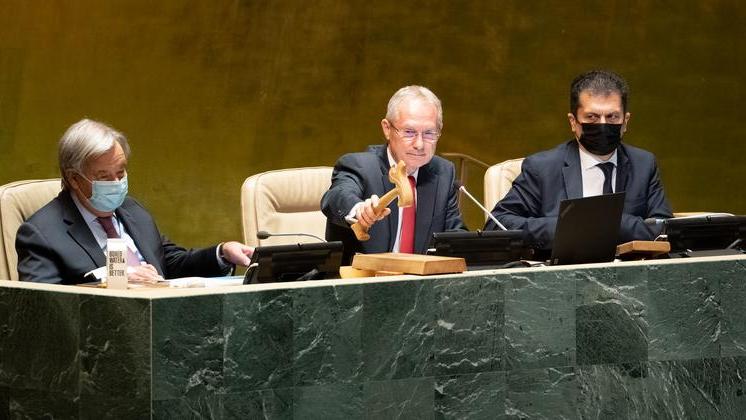 Aux yeux du Président de la 77e session de l’Assemblée générale de l’ONU, l’Organisation reflète les tensions du monde qui l’entoure, d’où l’attention prioritaire de Csaba Kőrösi à résoudre les grands problèmes qui nous divisent et à contrer le déclin de la confiance, en recourant à la gestion de crise et à des mesures de transformations ainsi qu’à de multiples et fréquentes consultations informelles entre représentants.
