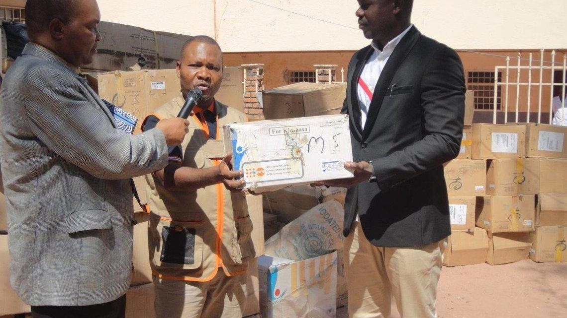 Remise d’intrants de planification familiale à la division de la santé du Tanganyika par UNFPA. Photo MONUSCO/Expedit Mwamba-Mubi
