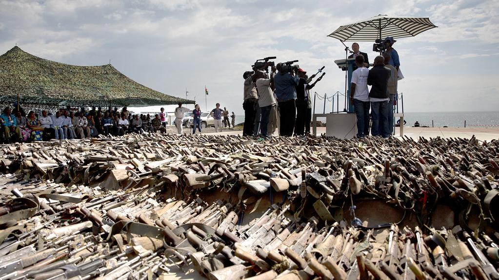 Cérémonie organisée le 20 novembre 2013 à Goma, au Nord Kivu, pour la destruction de 926 armes et de 38 801 munitions collectées auprès de différents groupes armés à l’Est de la RDC, d’octobre 2012 à novembre 2013, par la division chargée du Désarmement. Photo MONUSCO/ Sylvain Liechti