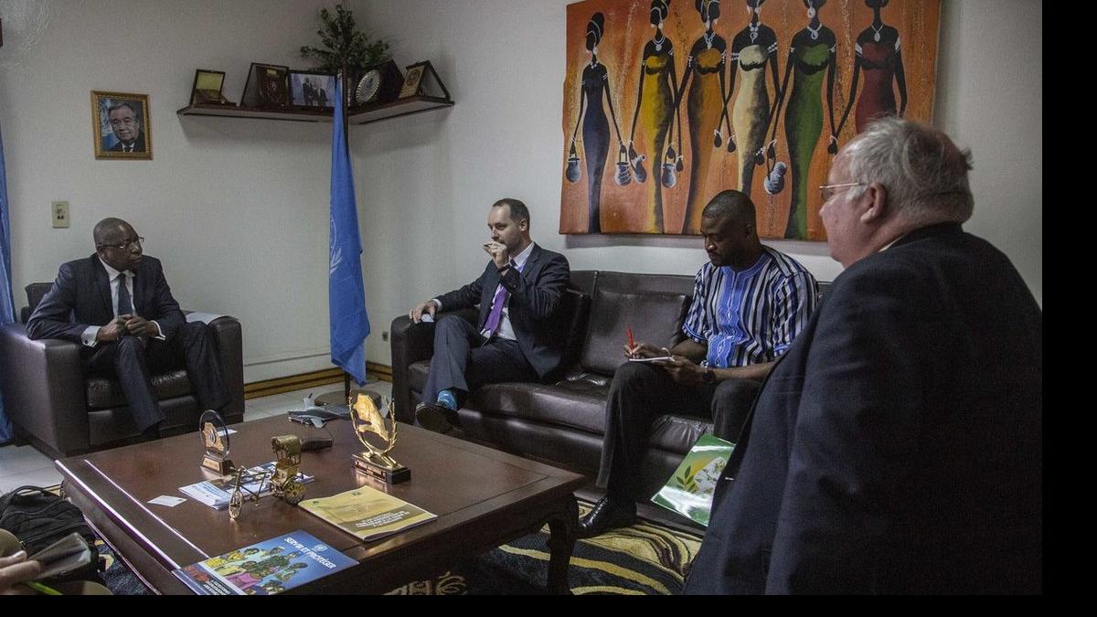Le Directeur exécutif Florian Irminger de la Penal Reform International (PRI), partenaire d'exécution de la section de la Justice et des affaires pénitentiaires de la MINUSCA, a rencontré le 31 octobre 2019, le Représentant spécial du Secrétaire général, Mankeur Ndiaye, pour l'informer de la stratégie de démilitarisation de l'administration pénitentiaire d'Afrique centrale.