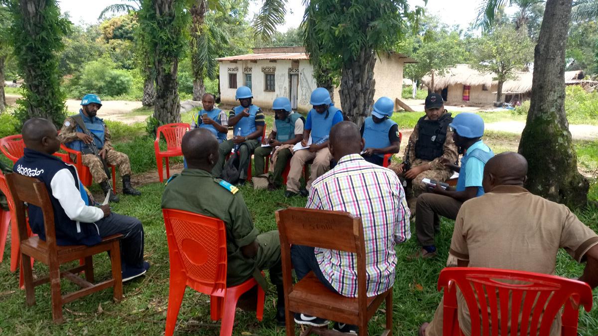 La délégation de la MONUSCO en discussion avec les autorités locales à Kazimiya. Photo MONUSCO/UNPOL TAMOU YATAOU Zakari
