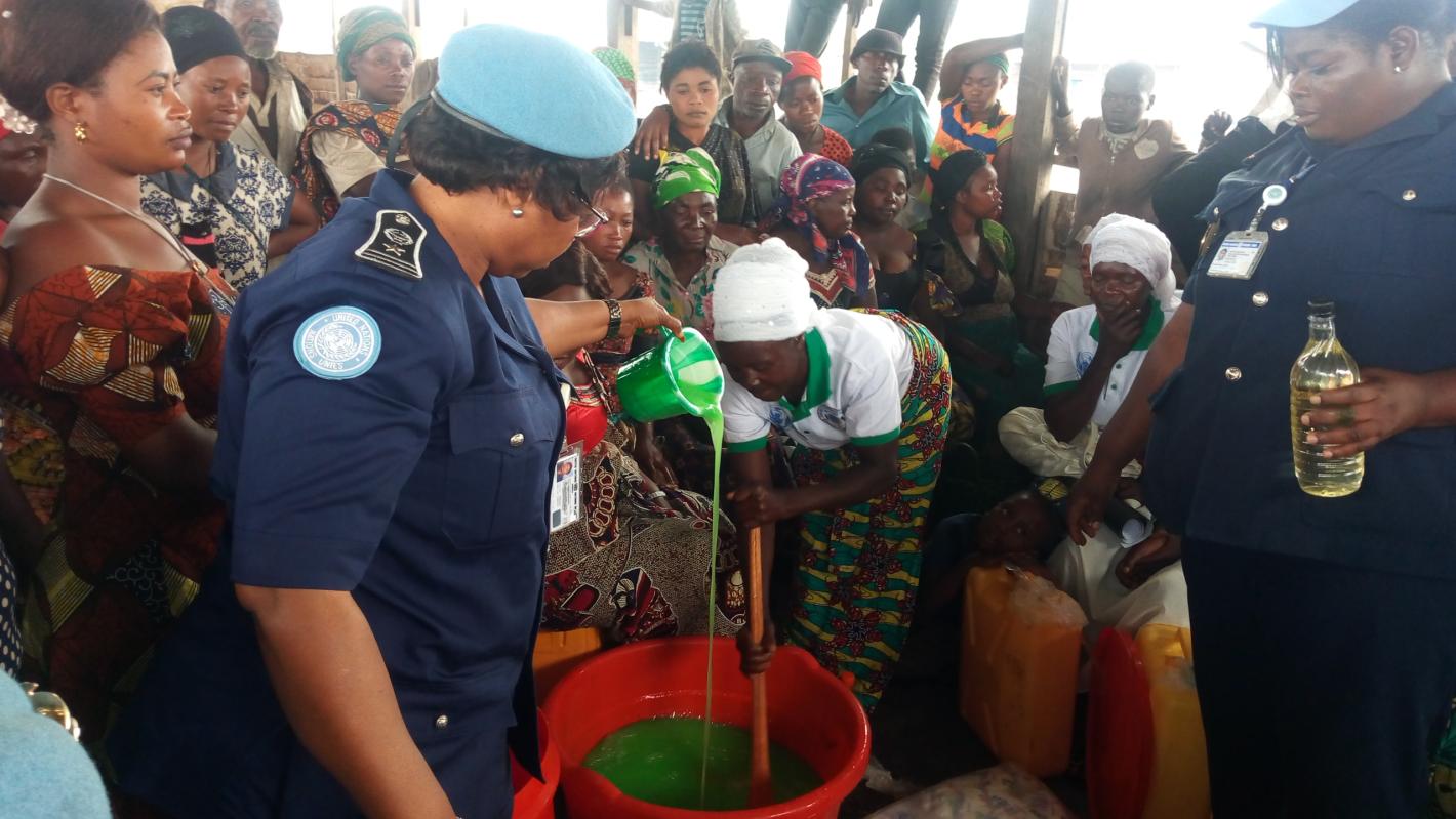 UNPOL initie 320 femmes à la fabrication de savon liquide. Photo MONUSCO/UNPOL