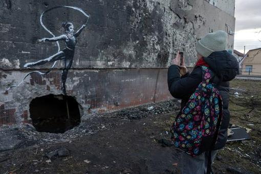 Une œuvre de street art réalisée par Banksy, graffeur célèbre dans le monde entier, est apparue sur le mur d'une maison endommagée de Borodianka, dans la banlieue de la capitale ukrainienne Kyïv. C'était au début du printemps…