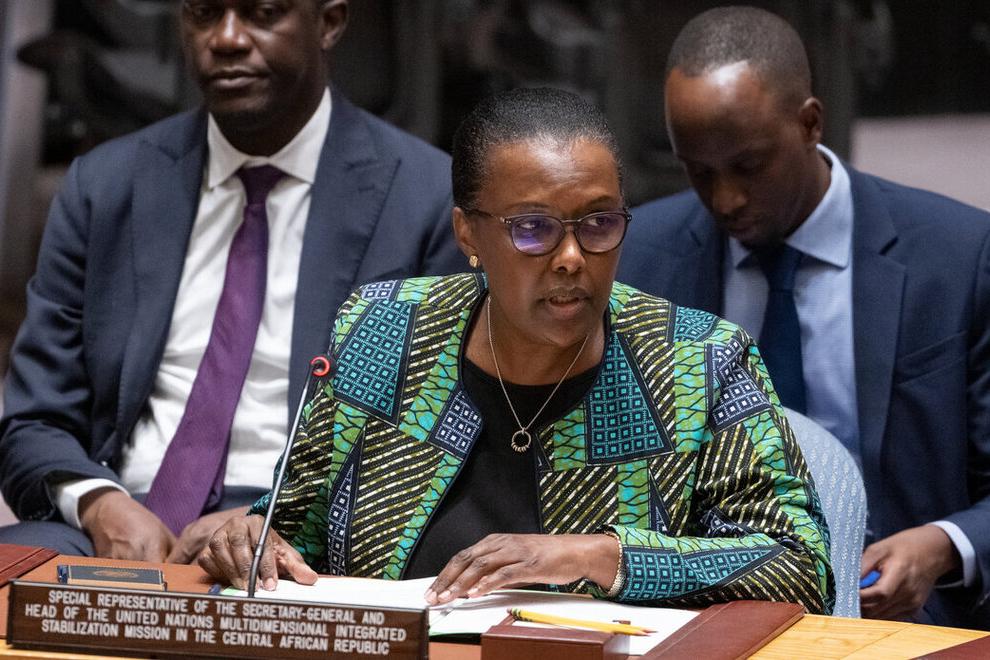 Photo: UN Photo / Eskinder Debebe La Représentante spéciale du Secrétaire général de l’ONU et Cheffe de la MINUSCA, Valentine Rugwabiza, a présenté, le 19 octobre 2022, au Conseil de Sécurité de l’ONU, le rapport du…