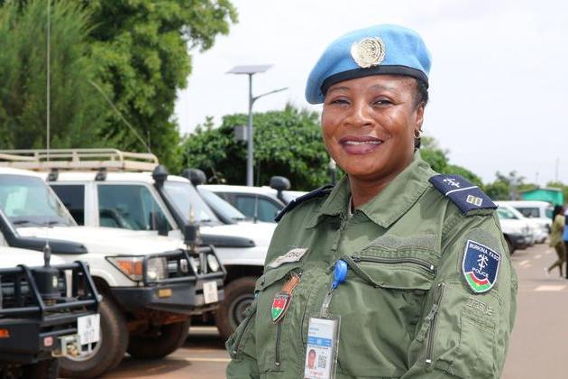 L'adjudant-chef Alizeta Kabore Kinda du Burkina Faso, actuellement en service dans la Mission multidimensionnelle intégrée de stabilisation des Nations Unies au Mali (MINUSMA), reçoit aujourd’hui le prix de la femme policière…