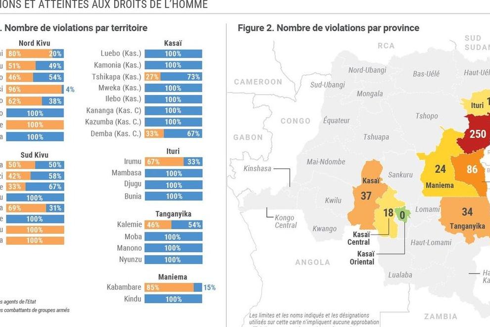 Entre janvier et juin 2019, le BCNUDH a documenté 3.039 violations et atteintes aux droits de l’homme sur l’ensemble du territoire de la RDC, soit une baisse par rapport à la même période l’année précédente (3.324 violations)…