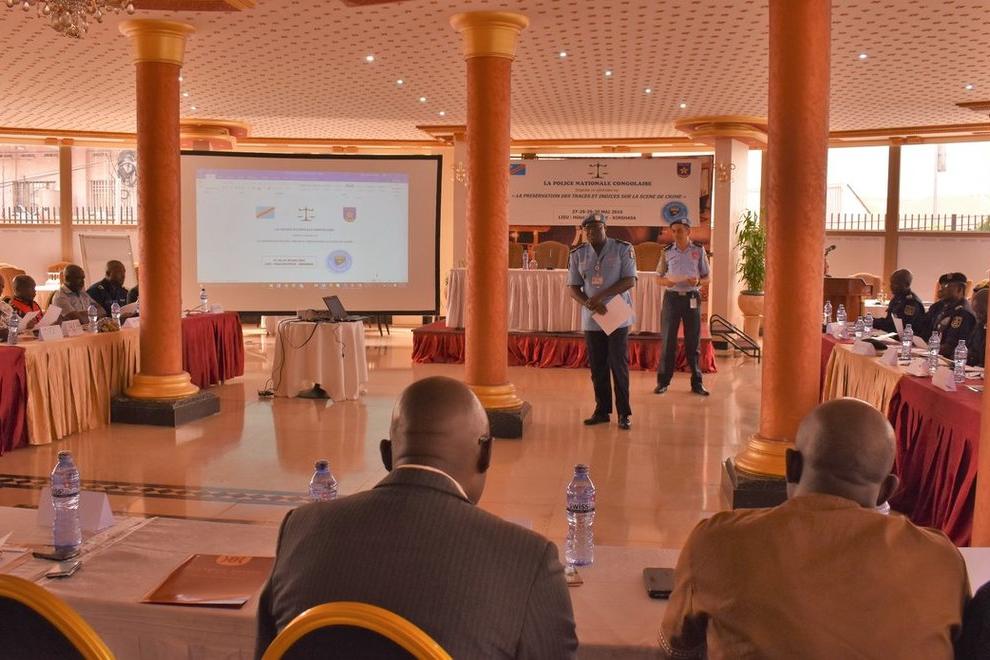 La Police MONUSCO organise un atelier sur les méthodes et techniques scientifiques d’enquête. Photo MONUSCO/UNPOL Kinshasa, le 27 mai 2019 – La Police MONUSCO a organisé, ce lundi, un séminaire autour du thème : «préservation…