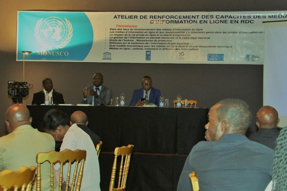 Des journalistes de médias en ligne formés sur l’éthique, le respect de la vie privée et la liberté d’expression. Photo MONUSCO/John BOMPENGO Kinshasa, le 19 septembre 2018 – L’impact possible du journalisme numérique, ses…