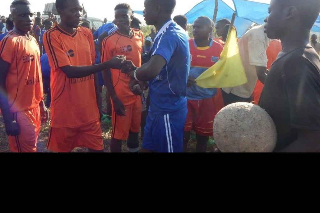 Dans le cadre du projet de sensibilisation de masse « Tusikilizane », l'UNFPA et la CDJP ont organisé un match de football pour encourager la cohabitation pacifique des communautés du Tanganyika. Photo UNFPA/Vanessa St Val…