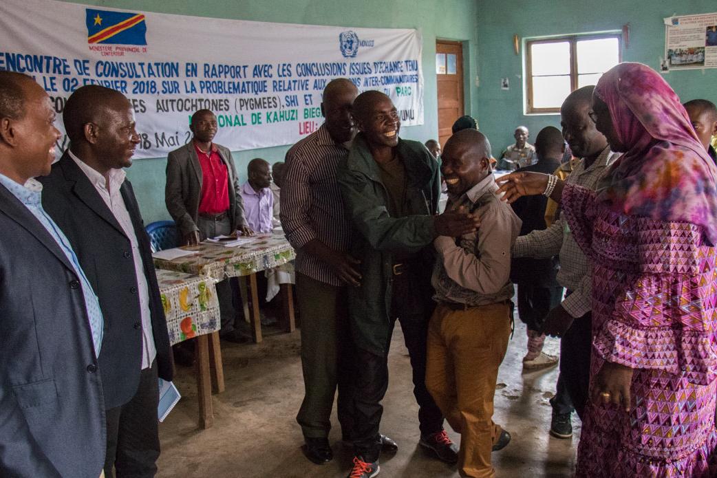 Séance de restitution des conclusions des rencontres pour résoudre le conflit pygmées-communauté Shi et le PNKB. Photo MONUSCO/Alain LIKOTA Kavumu, le 18 mai 2018 – Au Sud-Kivu, la communauté pygmée revendique depuis…