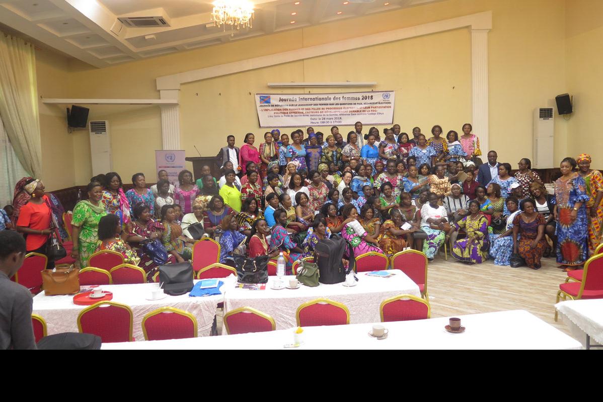 Photo de famille à l'issue de la journée de réflexion sur le leadership des femmes, avec la participation de la RSSG de l’ONU en RDC et Cheffe de la MONUSCO, Leila Zerrougui. Photo MONUSCO/John BOMPENGO Kinshasa, le 28 mars…