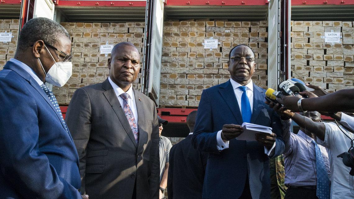 Le Représentant spécial remet au Gouvernement une partie de la contribution de la MINUSCA pour lutter contre le COVID-19