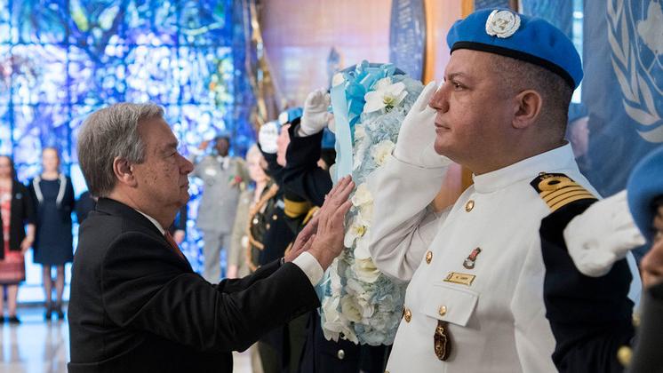 Le chef de l'ONU dépose une gerbe au nom des Casques bleus tombés
