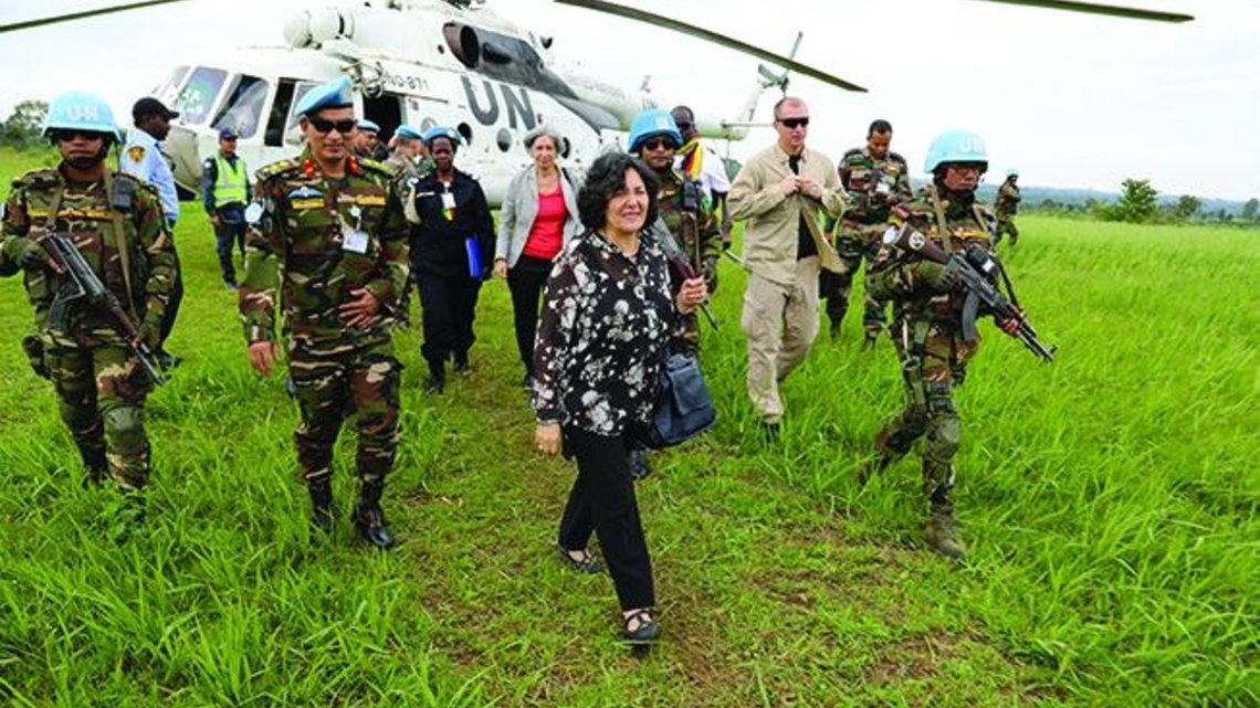 Leila Zerrougui, Représentante spéciale du Secrétaire général en République démocratique du Congo, arrive à Fataki, dans la province de l’Ituri, suite aux attaques meurtrières contre la population. 1er avril 2018. © MONUSCO…