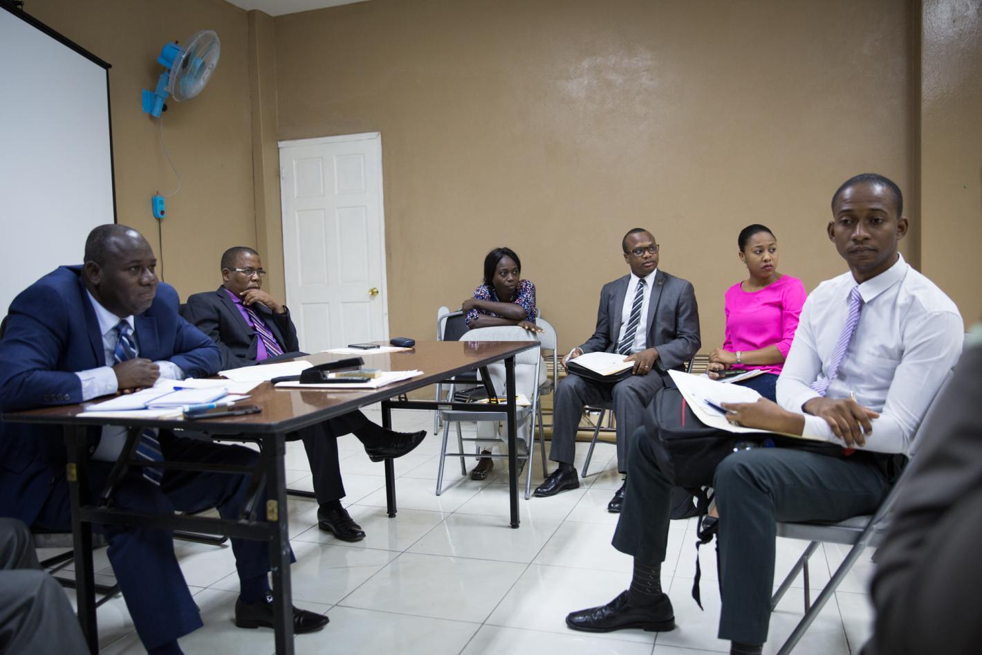 Chaque mois, le Comité de suivi de la chaîne pénale (CSPC) se réunit pour résoudre le problème de la détention préventive prolongée en Haïti. © Leonora Baumann / UN / MINUJUSTH, 201906 février 2019MINUJUSTHChaîne pénale : un Comité pour résoudre ensemble la question de la détention préventive prolongée