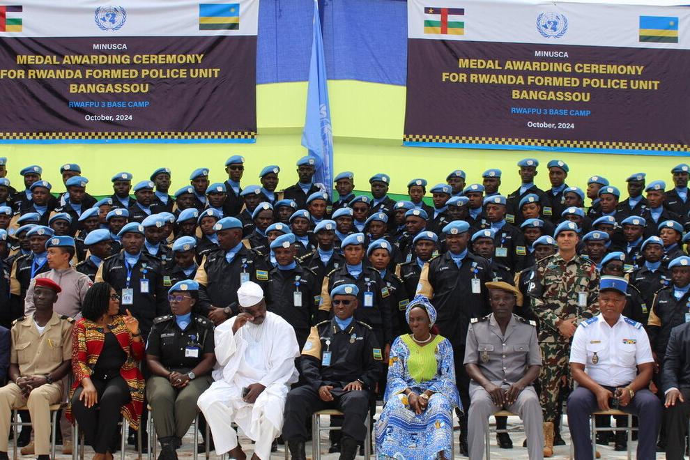18 octobre 2024MINUSCALe contingent rwandais de la MINUSCA déployé à Bangassou décoré de la médaille des Nations Unies