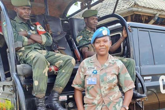 30 mai 2023MONUSCOMajor Thobeka Mswane, femme soldat de la paix d’origine sud-africaine, s'est engagée à faire de la RDC un endroit plus sûr pour les femmes et les enfants