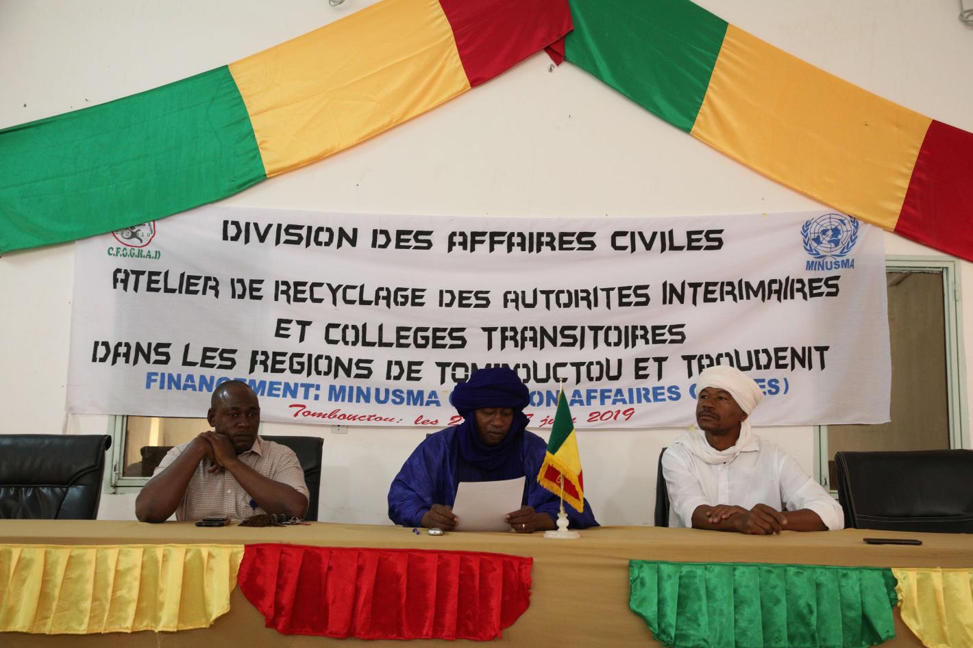 02 juillet 2019MINUSMALa maîtrise d’ouvrage, la prévention et la gestion de conflit au centre d’une formation au bénéfice des Autorités locales et Agents des services à Tombouctou