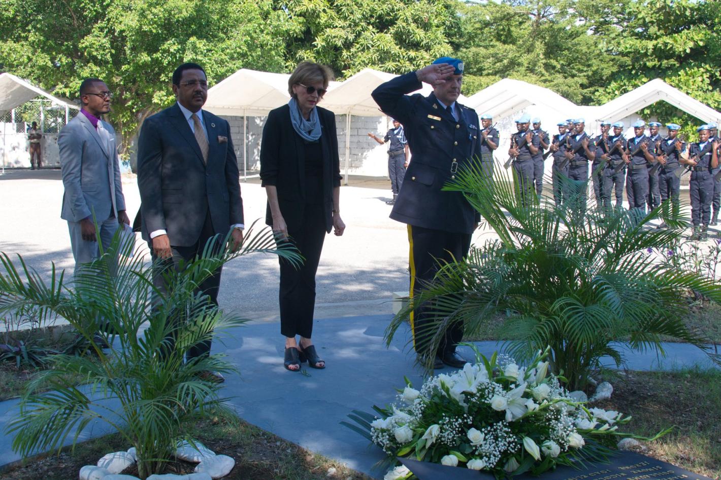 La Représentante spéciale du Secrétaire général des Nations Unies en Haïti a rendu hommage aux familles et proches des victimes du tremblement de terre du 12 janvier 2010. © UNPOL Mahamadou Hafizou Djibrilla / UN / MINUJUSTH, 201912 janvier 2019MINUJUSTHCommuniqué de presse – 12 janvier 2019