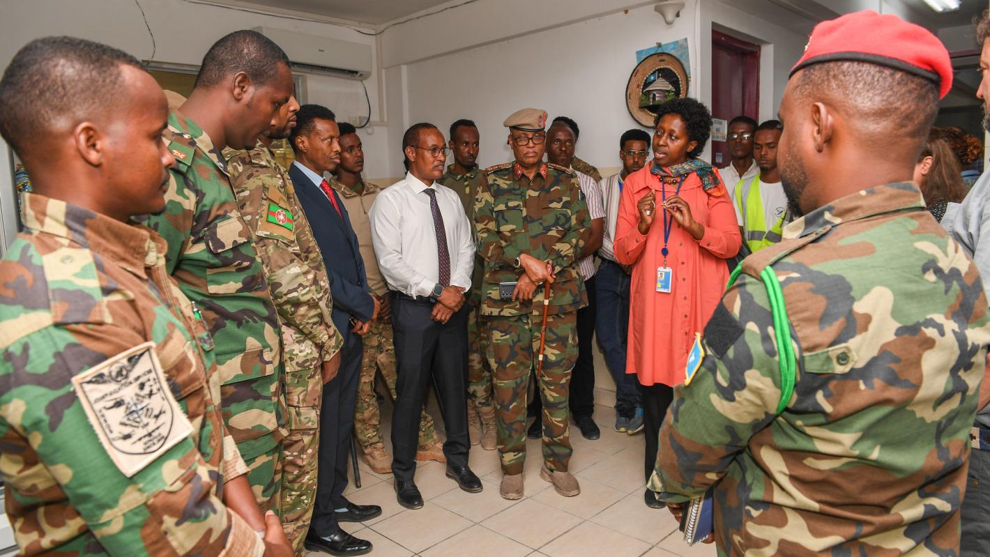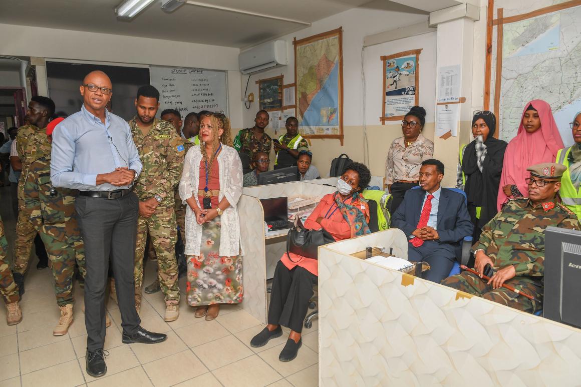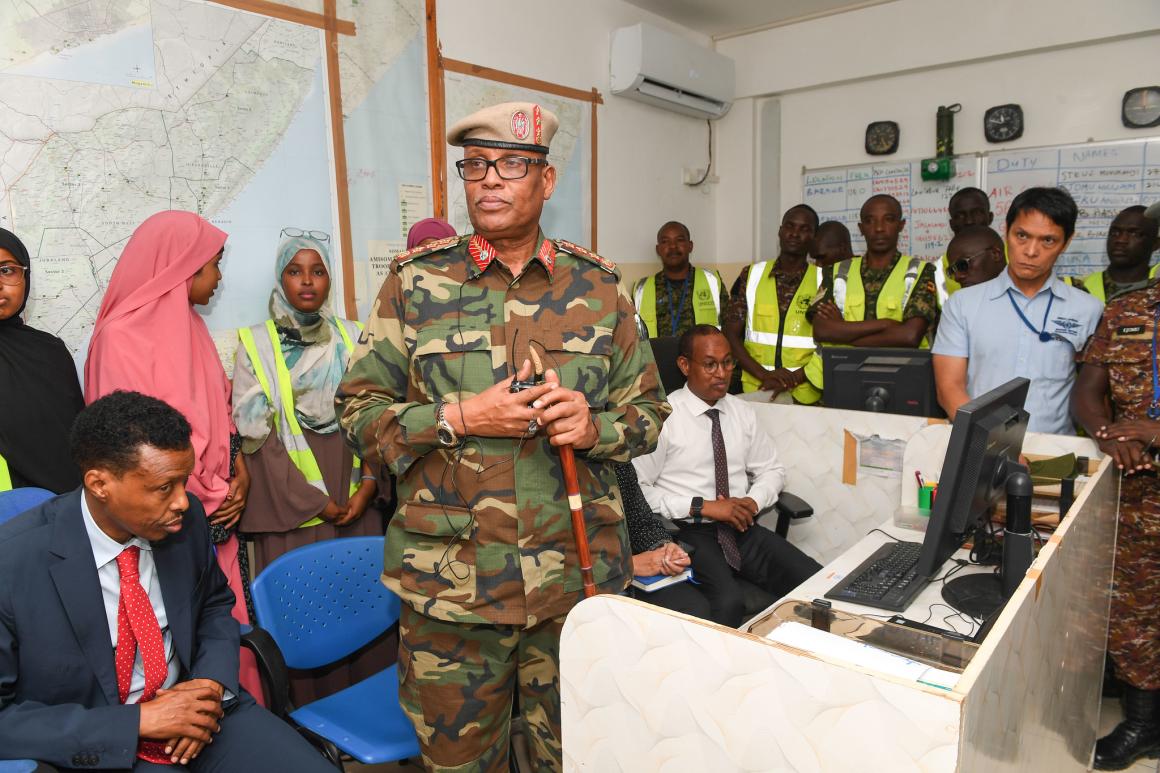Muqdisho – Booqashadii udambeysey ee dhawaan ay ku tagey xarunta QM ee duulista hawada ee Muqdisho, ayey madaxa UNSOS, kaaliyaha xoghayaha guud ee Qaramada Midoobay Dr Aisa Kirabo Kacyira iyo mas’uuliyiin ka tirsan dowladda Soomaaliya oo uu horkacayey la taliyaha amniga Qaranka Xuseen Sheekh Cali dib u eegis ku sameeyeen sida ay u socoto tayeynta adeegyada duulista ee la siinayo ciidamada amniga Soomaaliya iyo shaqaalaha duulista hawada Soomaaliya.