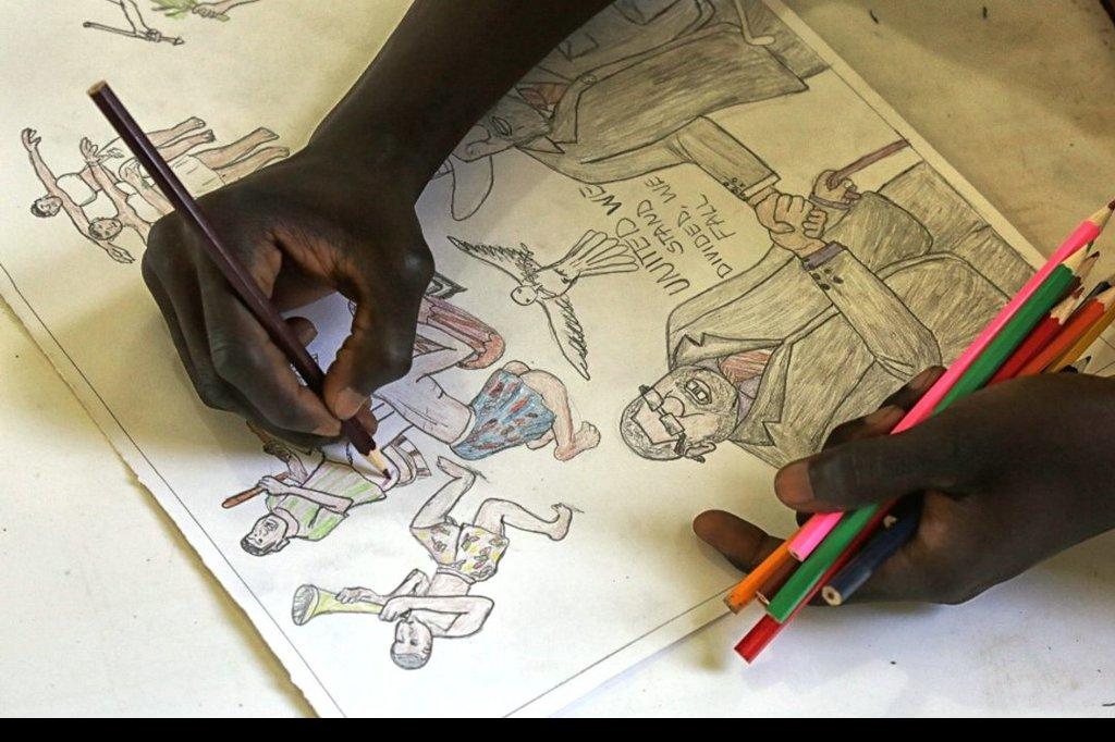 "South Sudan peace" was the theme for participants in the UNMISS Art for Peace contest in Juba. A blank canvas. Imagination, pencils and brushes in motion. “I remember seeing how happy my father was when South Sudan gained…