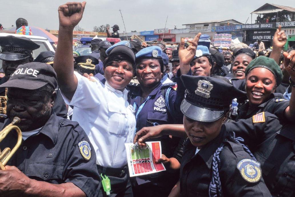Police officers of the United Nations and the Liberia National Police join together in celebration. Photo: UNMIL | 4 Mar 15 The main role of the UN Police in Liberia has been support to and reform of the Liberian security…