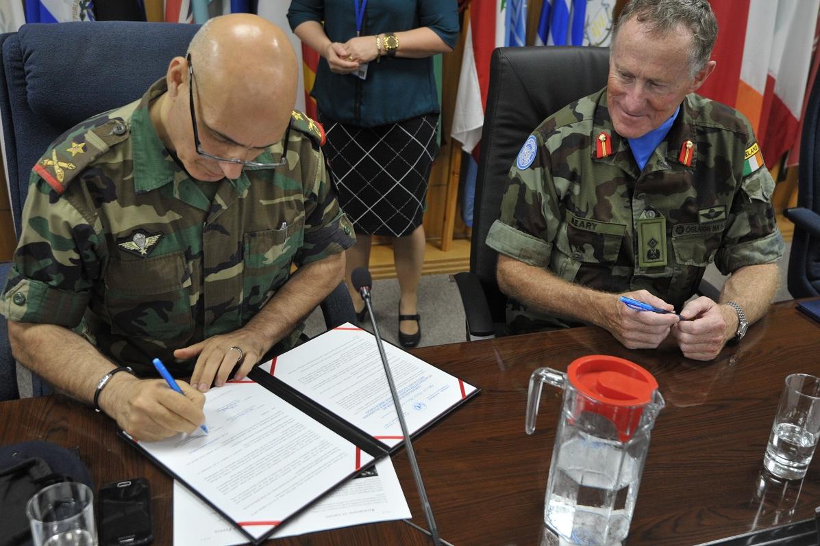 Brigadier General Mohammed Janbay of the Lebanese Armed Forces (LAF) signs a receipt of the equipment donated by UNIFIL. UNIFIL today handed over a number of UN-owned assets worth nearly $400,000 to the Lebanese Armed Forces…
