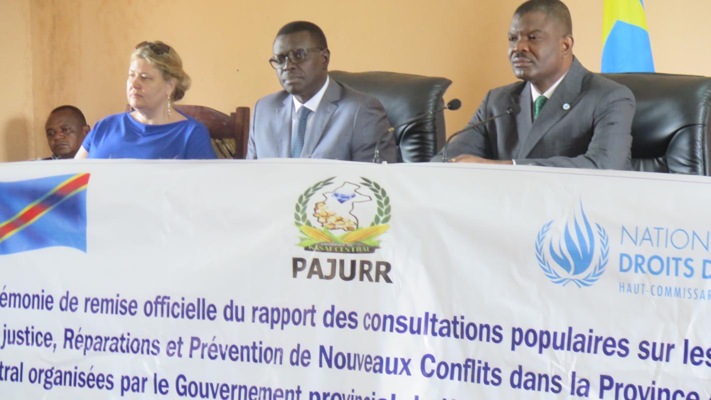 An official ceremony during which the report was handed to the provincial authority on February 4 was chaired by Martin Kabeya, the Governor of Kasaï Central province. The ceremony was attended by UNJHRO Director, Aziz Thioye, MONUSCO office chief in Kasai central province, Sophie Stecher, as well as civilian and military authorities of the province and representatives of the United Nations system working in the Kasaï Central province.