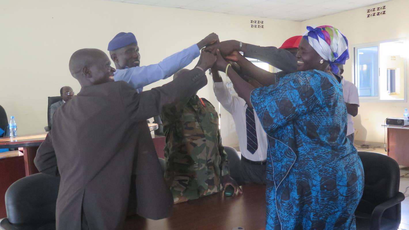 The resolution signing ceremony was witnessed by the Acting Governor of Torit, Okidi-Moi Ogura and UNMISS Head of Field Office, Caroline Waudo. Participants joined hands in prayer shortly after, symbolizing a positive step towards improved civil-military relations.