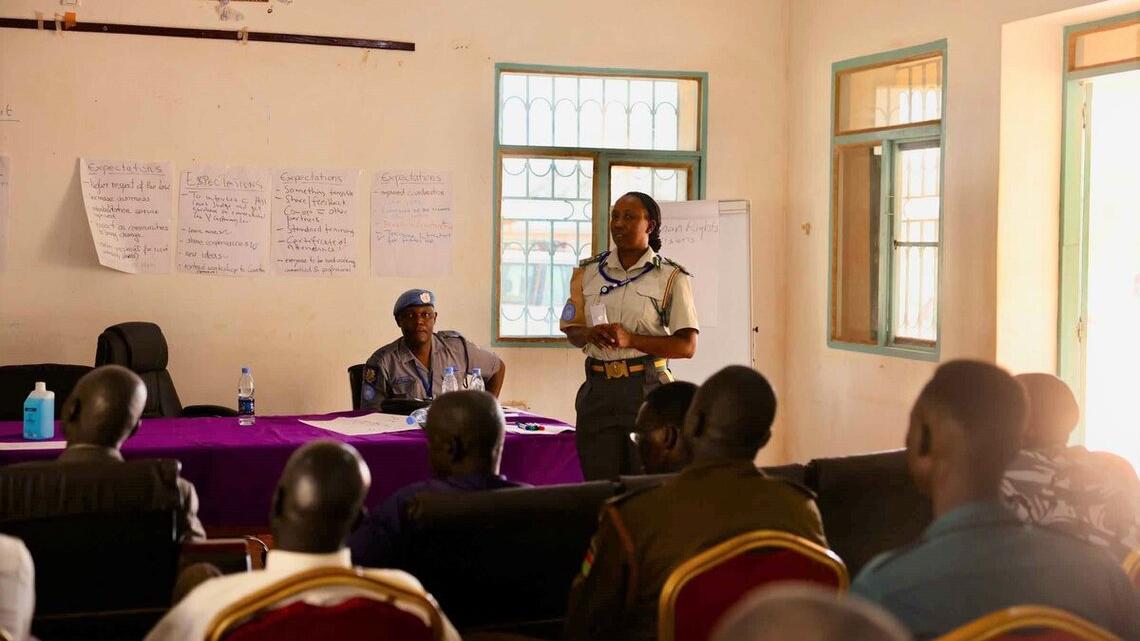 In Kuajok, more than 40 public prosecutors, justice actors, and law enforcers from the South Sudan National Police Service, the Corrections Service, the High Court, and local government actors came together in a three-day workshop facilitated by UNMISS. Photo by Zejin Yin/UNMISS