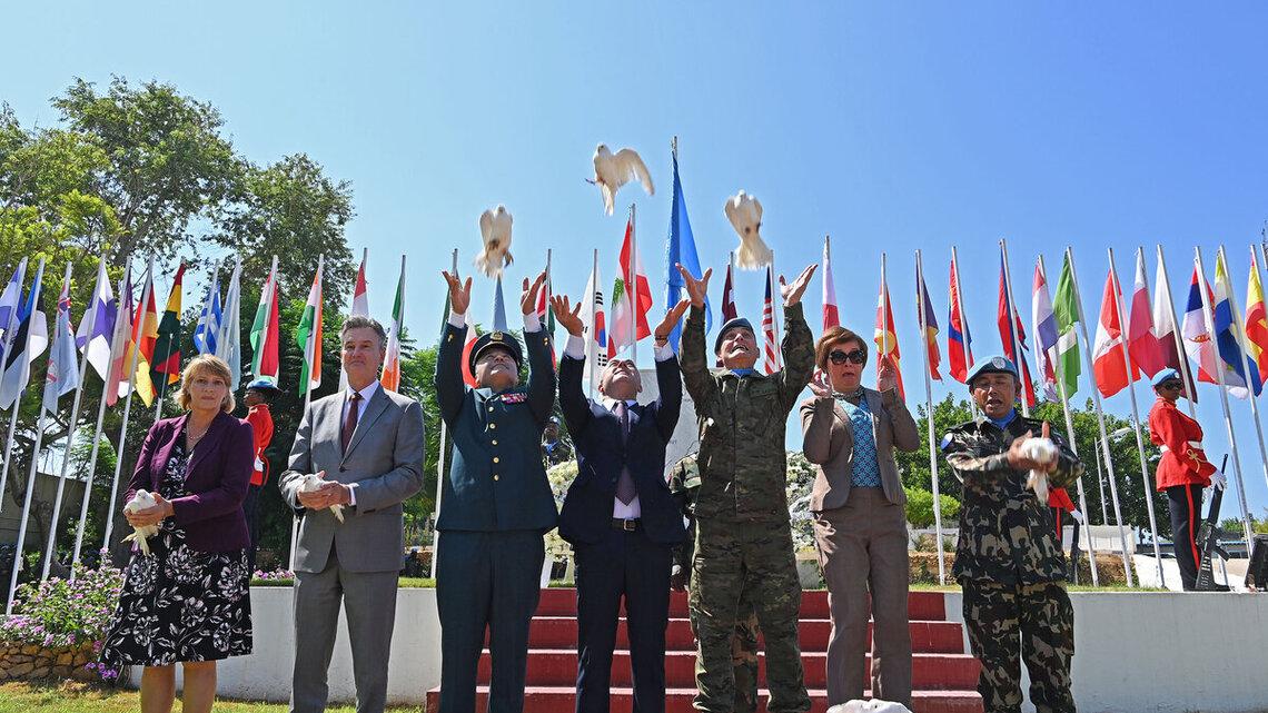 During the ceremony, military staff officers were awarded with the UN Peacekeeping Medal in recognition of their participation in the mission’s work. As is customary, white doves were released at UNIFIL’s cenotaph to symbolize peace.