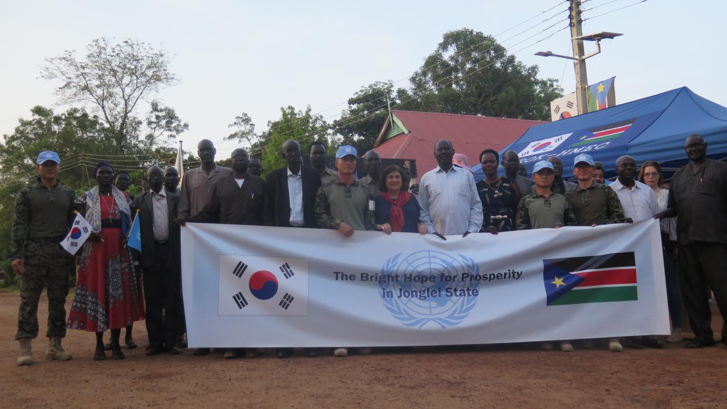 To mark the strong relationship between the Korean peacekeepers and the local community, the street with the LED lights has been named "South Sudan and South Korea Friendship Street" and the flags of both countries adorn the poles.
