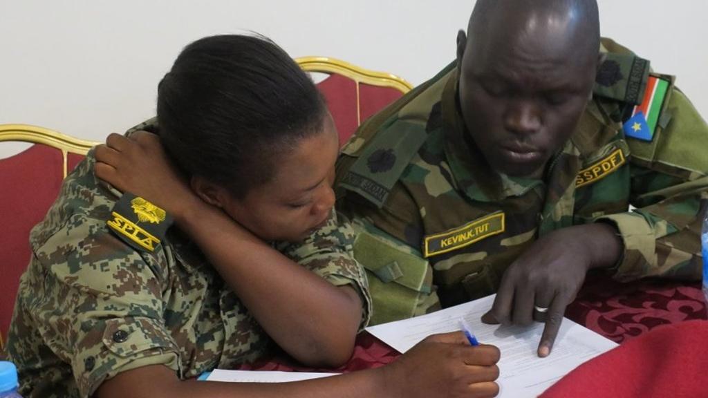 Government and opposition military side by side at an UNMISS-led training on child protection.