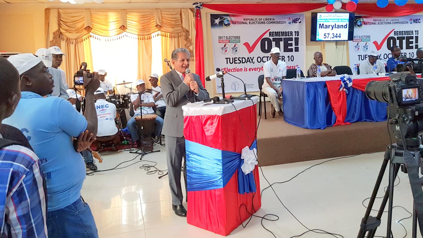 Monrovia, 18 August 2017 – National Elections Commission (NEC) of Republic of Liberia today launched the Civic and Voter Education for the 2017 Presidential and Representative Elections. Guest of the event was the Special Representative of the Secretary-General and Head of UNMIL, Farid Zarif. He congratulated the citizens of Liberia and inquired them “to make sure there is no misstep taken in the process that will lead towards increasing the level of tensions, leading to potential violence and disruption of the whole process”.