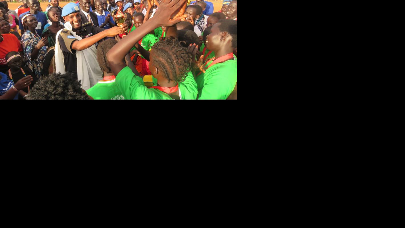 In the first match of a week-long tournament organised by the United Nations Mission in South Sudan (UNMISS), a team of women who have sought sanctuary in the Protection of Civilian sites in Juba triumphed over women peacekeepers by 3-0 in a competitive but entertaining match as spectators reveled in the electric atmosphere.