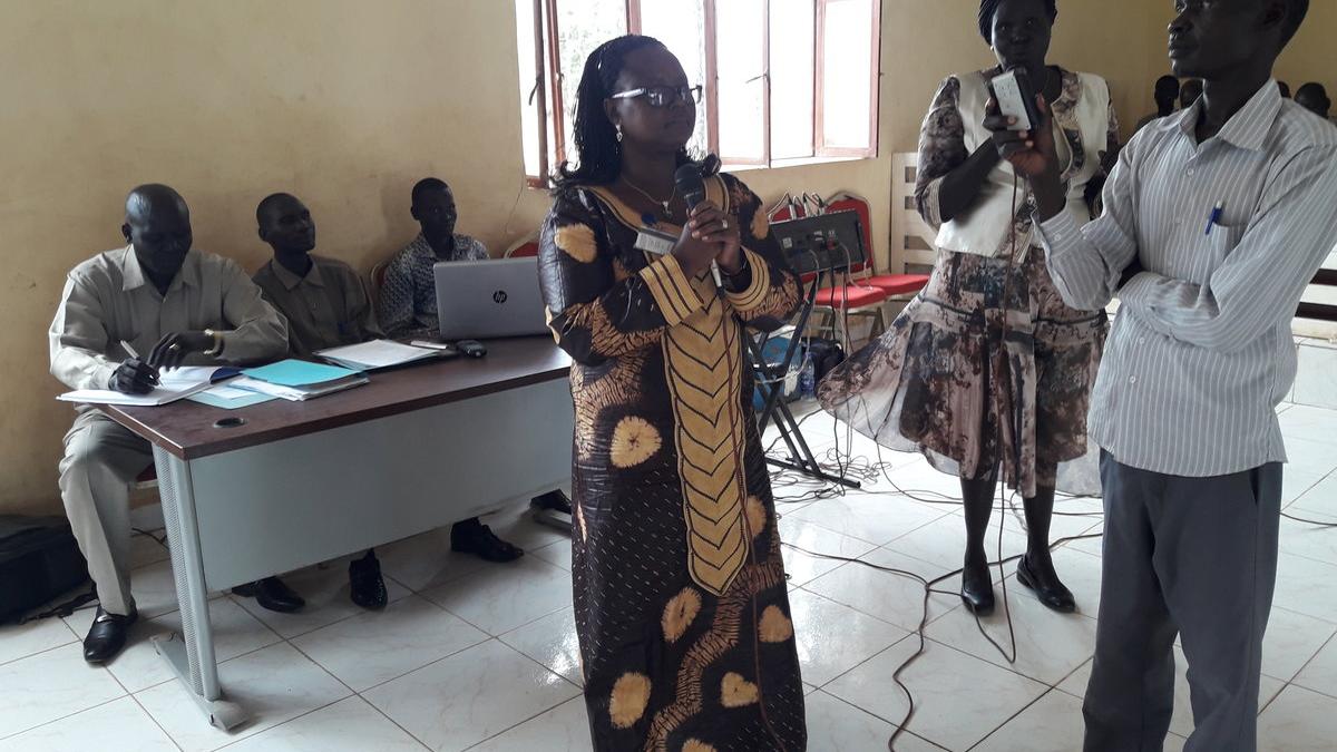 Anastasie Nyirigira, UNMISS Head of Field Office in Warrap, addresses a two-day peace conference in Kuacjok, South Sudan recently.