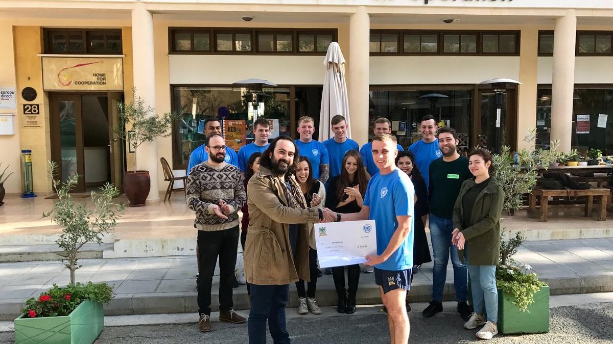 On the 22nd November 2017, the British contingent of UNFICYP’s Sector 2 military component undertook a charity event at Ledra Palace Hotel in order to raise money for the Imagine inter-communal schools programme. They rowed, ran and cycled the distance from Ledra Palace Hotel to their permanent home in Leuchars, Scotland, a distance of 2238 miles. Aiming to complete this in 24 hours, they succeeded in an impressive 14hrs and 8mins, raising over €400 for the charity, which was presented to Imagine representatives on Friday 15 December 2017.